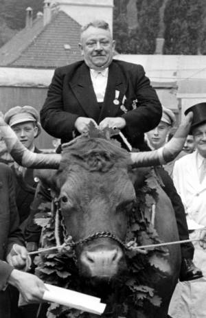 ![]() Auf breitem Ochsenrücken - Biergerichtspräsident Paul "Piepken" Thomee erträgt sein Los mit Würde.